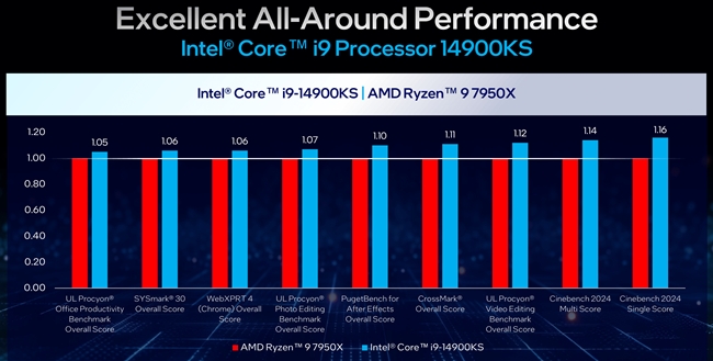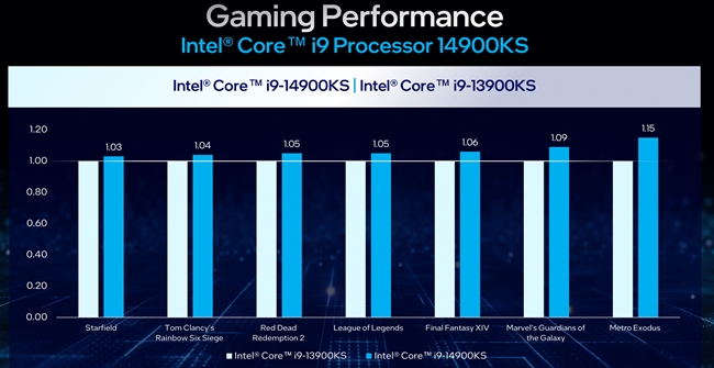 A processzor 200 MHz-es maximum órajelbeli előrelépést hozott az i9-14900K-hoz és az i9-13900KS-hez képest, egyéb tulajdonságaiban hasonlít az elődökre, például megmaradt a 24 mag és a 32 szál.