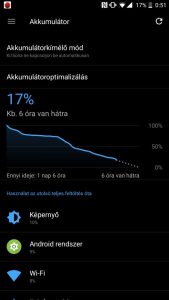 Az üzemidőről egy 3300 mAh kapacitású lítium-polimer akkumulátor gondoskodik. Ritka az a mobil, amit két hétig használok elsődlegesként (általában 1 hét a tesztidő), de a OnePlus 5-nél megtört az átok, így sokszor figyeltem az üzemidőt. Átlagosan az egy napos használat állja a helyét 3-4 órás kijelzőidővel.