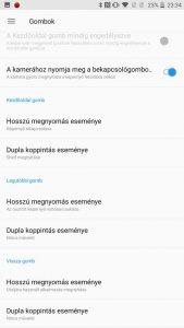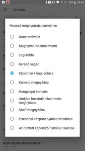 Aztán ott van a navigációs gombok dupla és hosszú érintéséhez hozzáadható funkciók, melyek között vannak igen hasznosak is. Így egyetlen gombnyomással visszaugorhatsz az előző applikációba, vagy kapcsolhatod ki innen a kijelzőt, tényleg sok lehetőség van benne, ami megkönnyíti a készülék használatát.