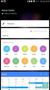 A legfontosabb a OnePlus Shelf, ami gyakorlatilag egy widget központ a főképernyőtől balra. Itt egyből láthatjuk az aktuális időjárást, készíthetünk gyorsan feljegyzést, hívhatjuk fel a gyakran keresett kontaktokat, láthatjuk naptár bejegyzéseinket és még csomó mást lehet hozzáadni egyéni igényeinknek megfelelően, legyen az akár zenelejátszó, email, vagy olyan appok widgete, melyek ezt támogatják.