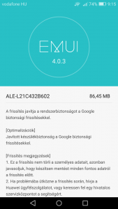A frissítés nagyjából 10 perc alatt fel is megy a készülékre. Ha még nem dobta fel a mobil, akkor irány a Beállítások -> Rendszerfrissítés menüpont vagy a HiCare applikáció.