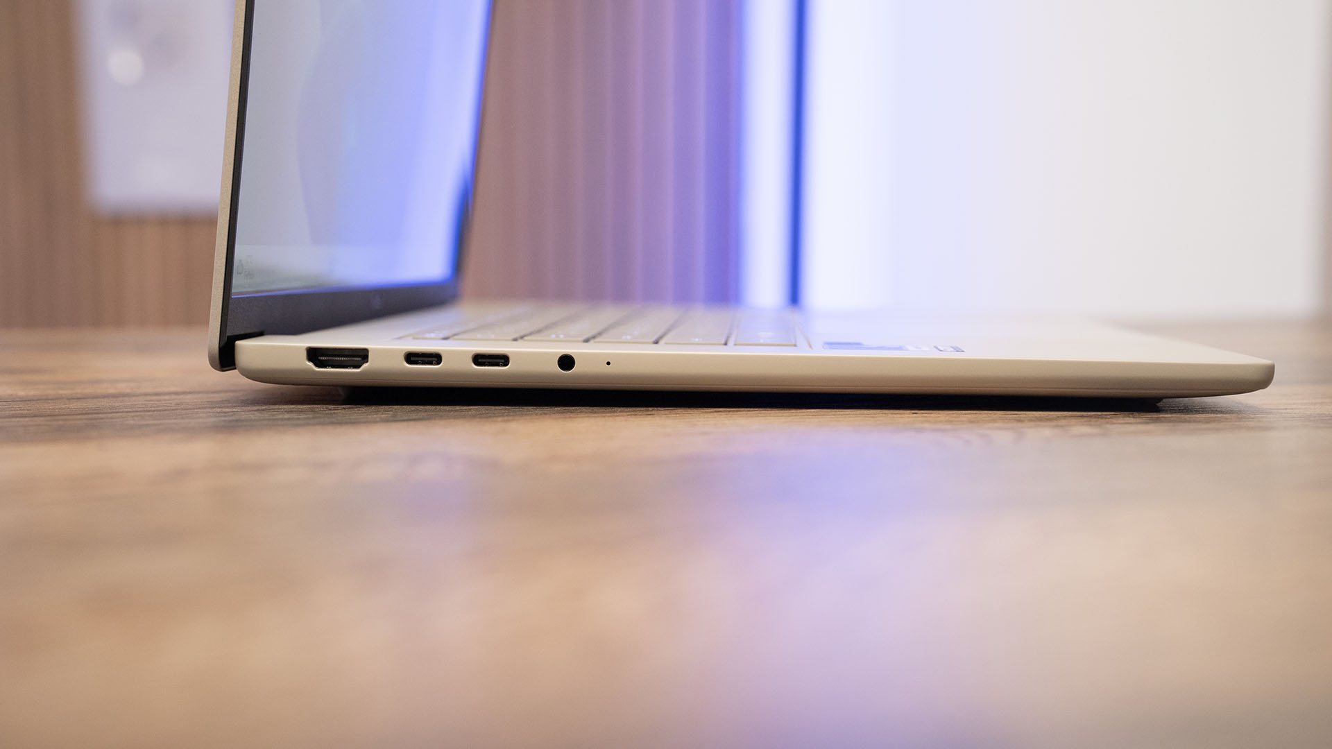 A vékony kialakítás ellenére a csatlakozók terén nincs komoly kompromisszum. USB-C, USB-A és HDMI is rendelkezésre áll, ami a legtöbb helyzetben elegendő. Ez különösen akkor jön jól, ha valaki nem szeret mindenhez külön adaptert használni. Mindehhez társul még egy SD-kártyaolvasó is, ami leginkább a fotós és videós felhasználás során jöhet jól, de mindenképpen üdvözölendő, hiszen néhány éve még mindenki megjegyezte, hogy elférne a gépeken.