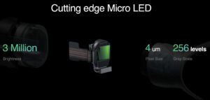 Az OPPO harmadik innovációja az Air Glass névre hallgató okosszemüveg volt. Erről van a legkevesebb információ, illetve kipróbálni, megnézni sem lehetett. Van benne egy Micro LED fényforrás és egy Spark Micro porjektor, a kép pedig egy zafír felületre vetítődik ki a szemünk elé.