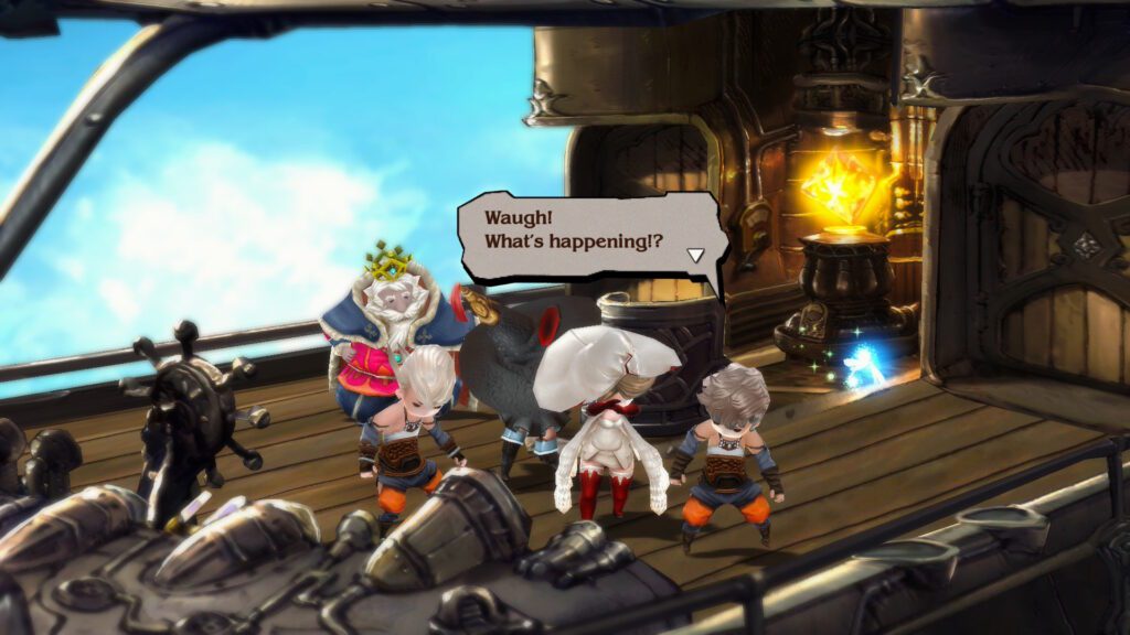 A játék története klasszikus fantasy alapokra épül: négy hős – Tiz, Agnès, Ringabel és Edea – indul útnak, hogy helyreállítsák a világ egyensúlyát az elemi kristályok megmentésével. A sztori nem titkoltan merít a Final Fantasy-játékokból, hiszen itt is óriási kristályok, világot fenyegető kataklizmák és a felnőtté válás útjára lépő fiatal hősök kálváriái várják a játékost. A történetvezetés organikus, a karakterek fejlődése pedig hitelesen ábrázolt, még ha a sokat látott JRPG játékosok számára nem is tartogat túl sok meglepetést. A Bravely Default Flying Fairy HD Remaster világépítésének egyik legnagyobb erőssége a diorámákra emlékeztető, festményszerű látványvilág, amely a 3DS-es eredetiben is lenyűgöző volt, de a HD Remasterben még inkább érvényesül. A városok, falvak és dungeönök részletgazdag kidolgozása, a kézzel festett hátterek és a magasról betekintő perspektíva egyedi hangulatot kölcsönöz a játéknak.