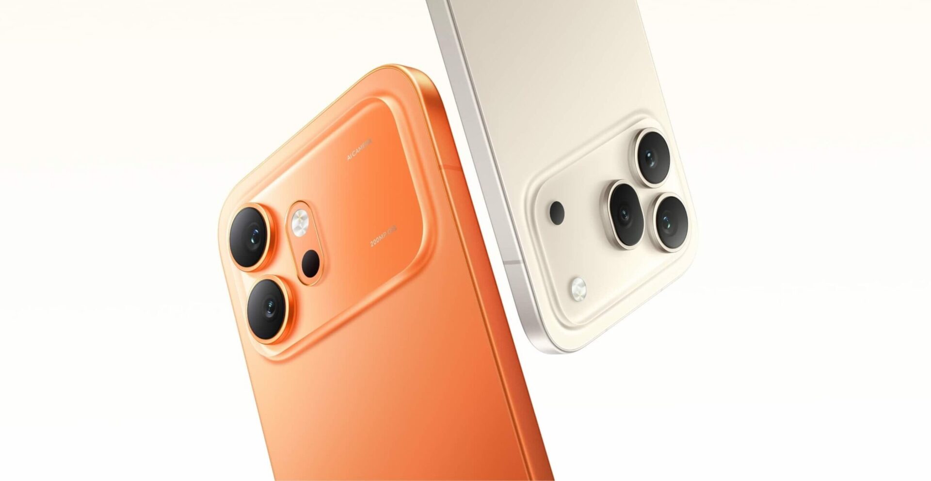 A dizájn az első, ami szemet szúr. A hátlapi kameramodul látványosan megnőtt, az összkép pedig erősen emlékeztet az iPhone 17 Pro vonalára, különösen az élénk narancssárga verzióval. Nem egyedi irány, de kétségtelenül feltűnő. A kijelző mindkét modellen azonos alapokra épít, egy 6,57 hüvelykes AMOLED panelről van szó 120 Hz-es képfrissítéssel és egészen brutális, akár 8000 nites HDR fényerővel. Ehhez jönnek az eye-care funkciók, mint a 3840 Hz-es PWM dimming és a hardveres kékfény-szűrés, ami már inkább a hosszú távú használhatóságot célozza.