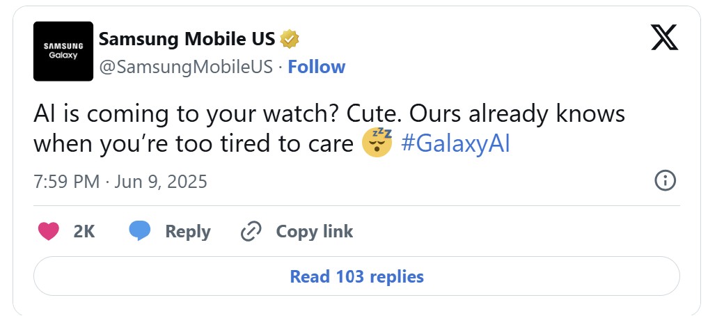 Végül az Apple Watch-oknál bevezetett AI funkciók sem úszták meg a Samsung trollkodását, hiszen a dél-koreai óriásnál már korábban is voltak ilyen funkciók.