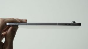 A tablet keskeny kávákat kapott, és nem is lett valami vastag sem. Mindössze 5,7 mm mely értékkel a legvékonyabb Samsung tablet díját is magáénak tudhatja. Kézbe tartva sem érezzük majd túl nehéznek, ugyanis 420 grammot nyom, az akkumulátora mégis 7040 milliamperóra kapacitású.