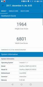 Ez a terület, ahol semmiben nem változott a OnePlus 5-höz képest. A processzor továbbra is egy Snapdragon 835, amihez egy Adreno 540-es grafikus gyorsítót társítottak, LPDDR4X RAM-ból modelltől függően 6 vagy 8 GB-ot kapunk, az UFS 2.1 tárhely pedig 64 GB vagy 128 GB.