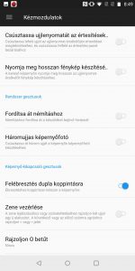 Ezen felül a Gombok menüponton belül különböző eseményeket adhatunk hozzá a három navigációs gomb hosszú és dupla érintéséhez, ami különösen hasznos, főleg ha egy gyakori appot gyorsan el szeretnél érni. A Kézmozdulatokon belül gesztusokat állíthatunk be, ezek közül én a dupla koppintásos képernyőébresztést használtam így, hogy a hátlapra került az ujjlenyomat-olvasó. Ehhez kapcsolható az 5T-ben lévő arcfelismerési funkció is, ami szoftveres megoldás, tehát elvileg a OnePlus 5 is képes lenne rá, de egyelőre csak az 5T tudja. Nem olyan komoly a rendszer, mint az iPhone X-nél, de ez szerintem jóval gyorsabb, felismer szemüveggel és anélkül is, viszont egy rólam készült fotóval nem old fel. Beállítható, hogy a kijelző felvillantása után egyből oldjon fel a képernyőzár, ami kényelmetlen lehet, ha csak az időt néznéd meg, ezért hozzáadható egy plusz felfelé legyintés is. Szerintem kiváló munkát végeztek az arcfelismeréssel, meggyorsítja a feloldási folyamatot, ha pl. az asztalon van a telefon, de sötétben használhatatlan, oda marad az ujjlenyomat-olvasó.