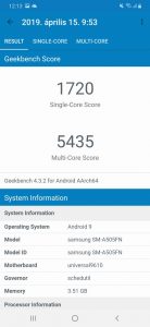 | Processzor | Exynos 9610 | Exynos 7885 | Snapdragon 730 |
