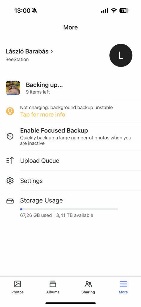 A BeeStation tartalmát minden platformról el lehet érni és lehet mozgatni a fájlokat, alapvetően ott a webes felület (https://portal.bee.synology.com/), illetve a két alkalmazás, a BeeFiles és a BeePhotos, ezek elérhetők iOS-re és Androidra is. Annyit kell csak tenni, hogy bejelentkezel a fiókodba és máris ott a NAS, az alkalmazások felülete teljesen megegyezik a webesével.