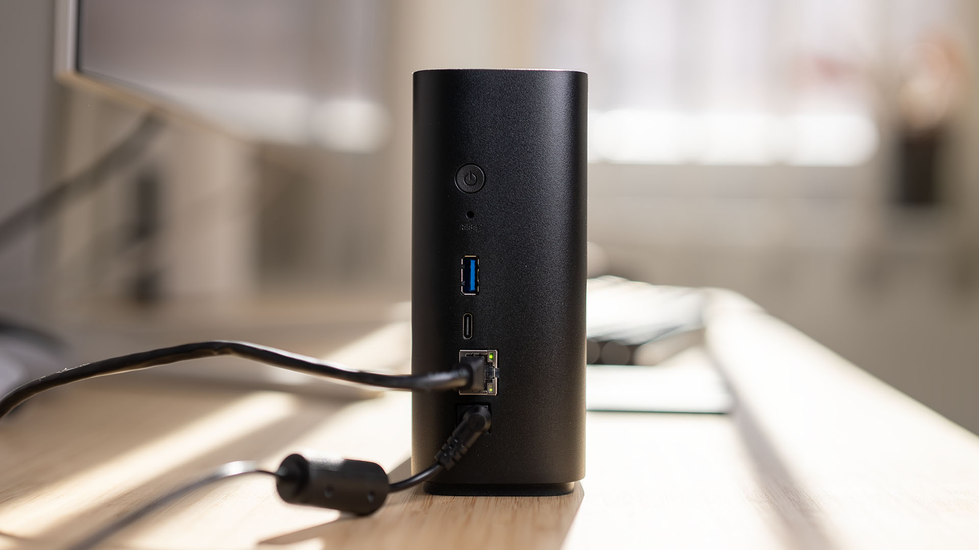 A működéséhez szükséges tápkábelt és gigabites Ethernet kábelt megkapjuk hozzá, de a hátoldalán van egy USB 3.2 Gen 1-es USB-A és egy USB-C, amihez külső adattárolót is köthetünk. Így ezeknek a tartalmát szintén el lehet érni távolról.