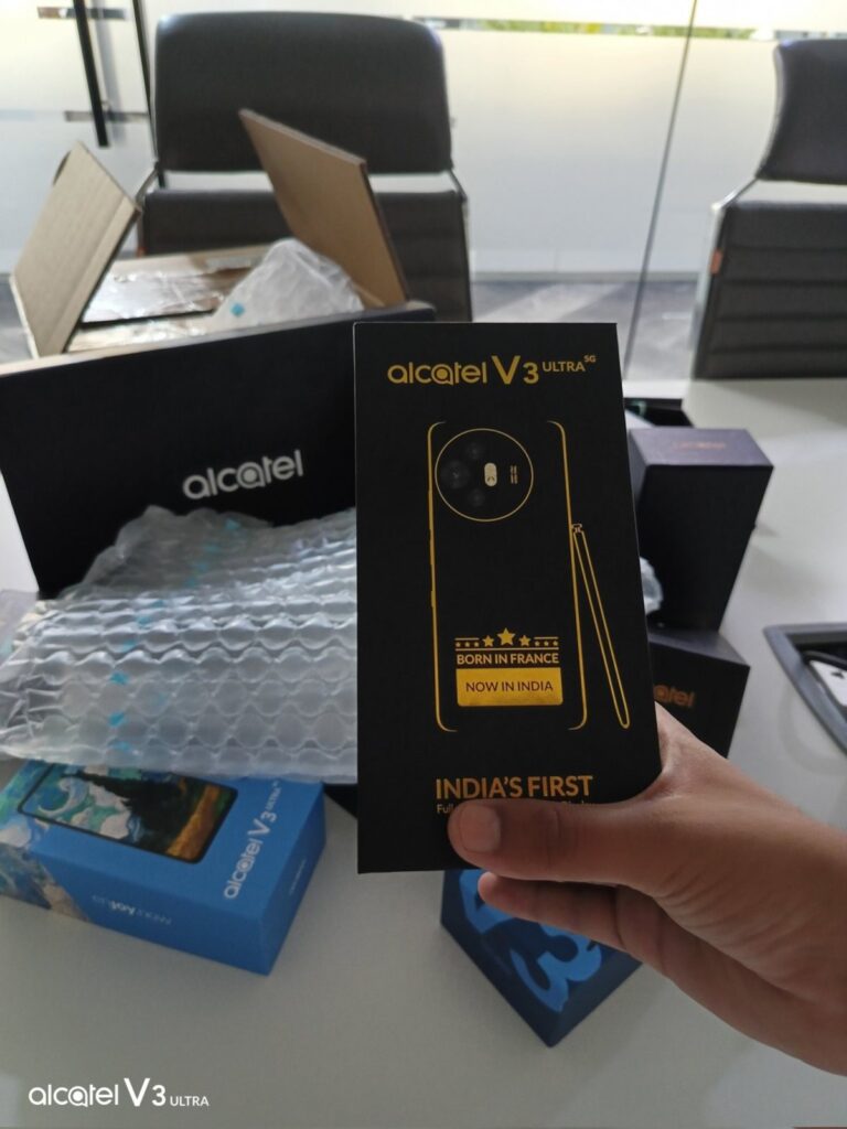 Madhav Sheth, egy bejegyzésben le is leplezte az első készüléket a V3 Ultra 5G-t. A poszt szerint az volt a feladata, hogy kiválassza a megfelelő dobozt hozzá, és ő a sárgával díszített feketét választotta, amelyen az állt, hogy „Born in France, now in India”. Az Alcatel telefonokat a NxtCell gyártja és értékesíti majd, amely a névhasználati jogot birtokló indiai vállalat, és céljuk, hogy a telefonokat „100% Made in India” termékként forgalmazzák.