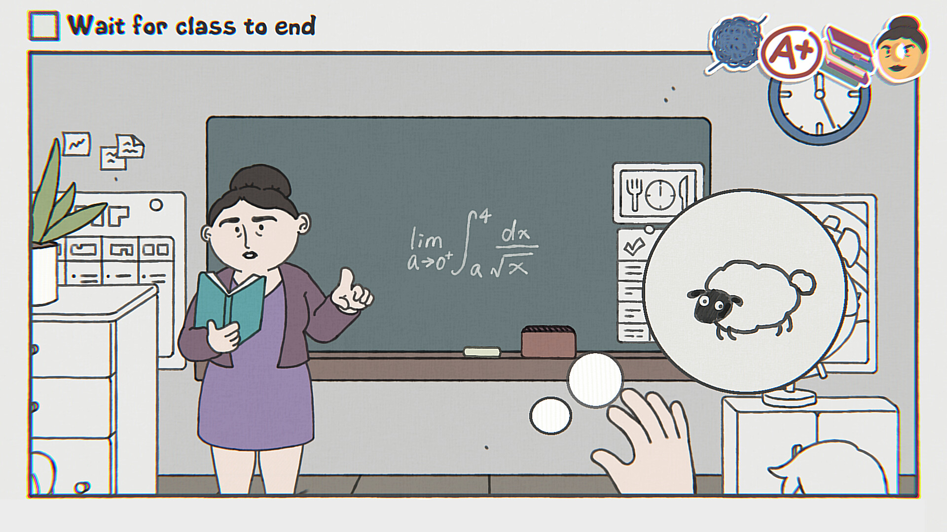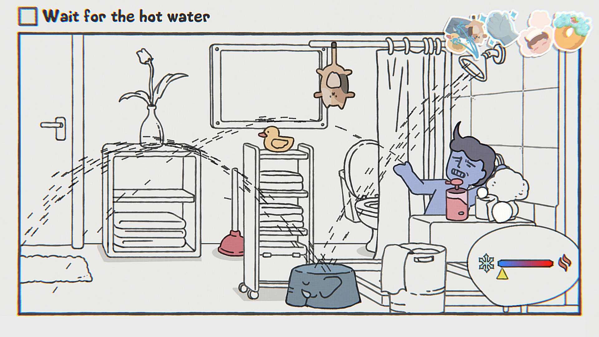 A fő kérdés persze az, hogy miképp lehet egy videojátékot készíteni a várakozásból. Hát pont így. A While Waiting száz könnyed szintet tartalmaz, amelyek mindegyikén valami egyszerű élethelyzetbe botlunk. Sül a pirítós, érkezik a busz, esik az eső, vagy magyaráz a tanító néni az iskolában. A feladat mindössze annyi, hogy kivárjuk ezeknek az eseményeknek a végét, de ha kedvünk úgy tartja, tevékenykedhetünk valami egyebet is a várakozás helyett.